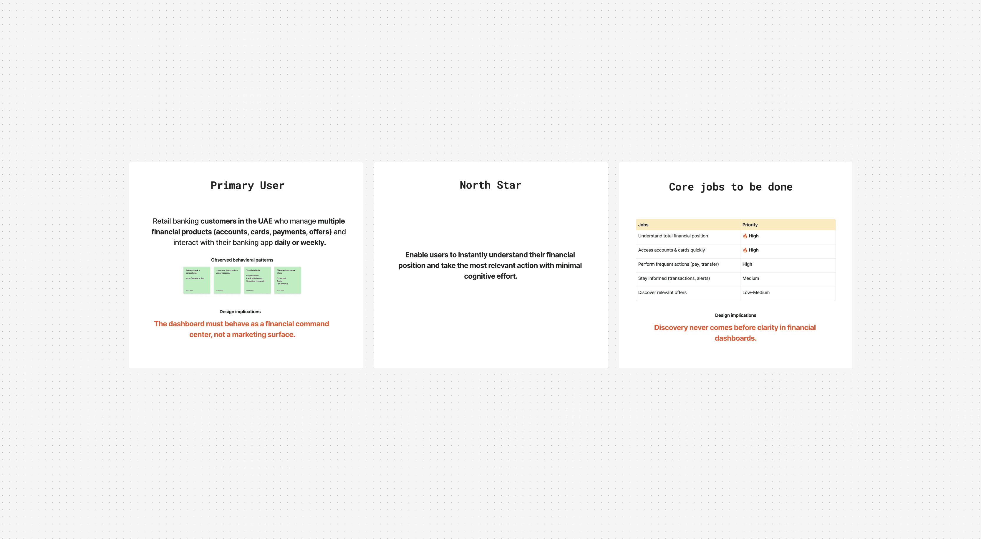 Retail banking customers in the UAE engage with their apps daily, yet the dashboard experience was fragmented, brand-led, and cognitively heavy.