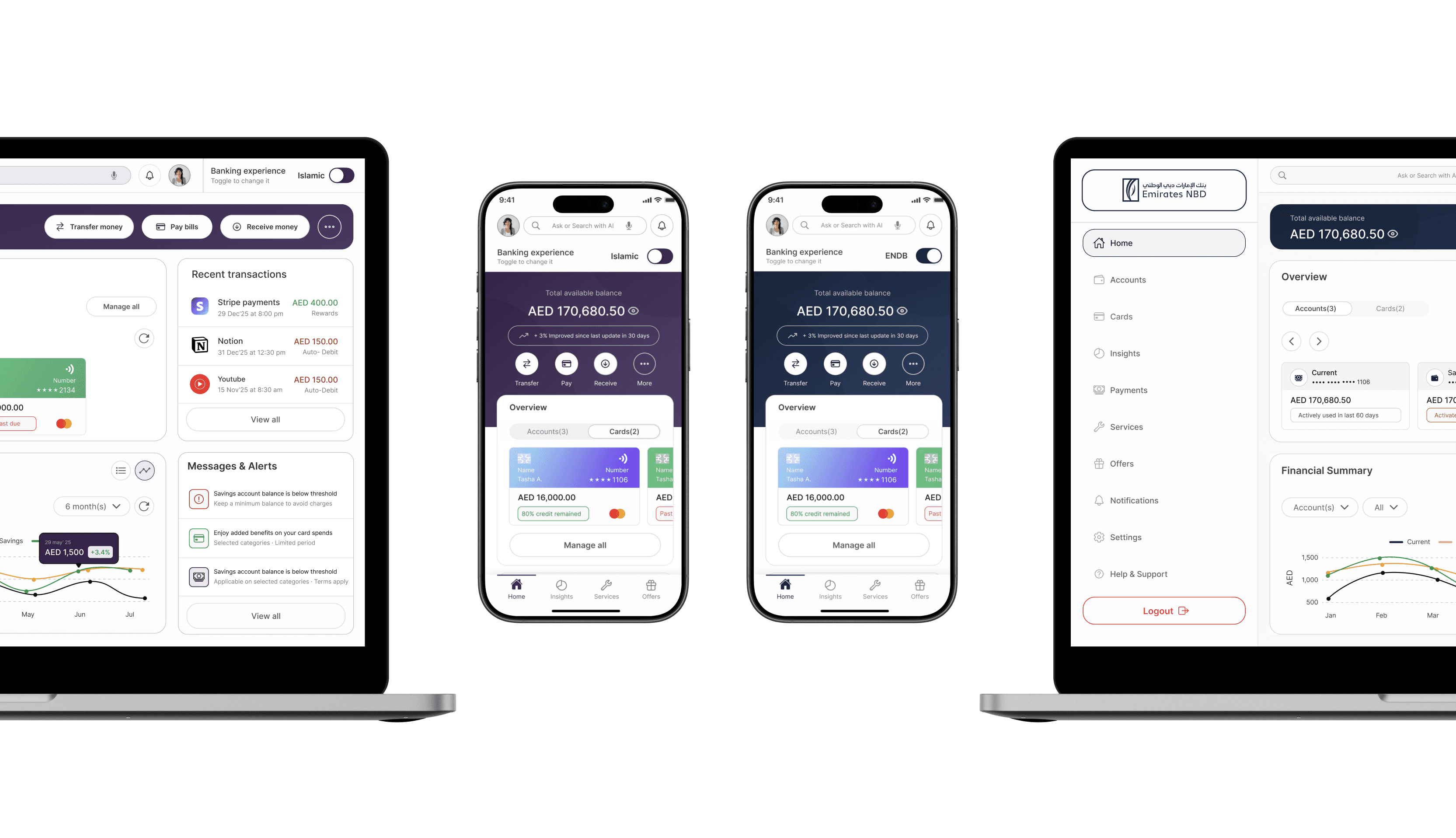 Users struggled to quickly assess their financial position, while internal teams managed parallel experiences across Emirates NBD and Emirates Islamic on web and mobile increasing system complexity.