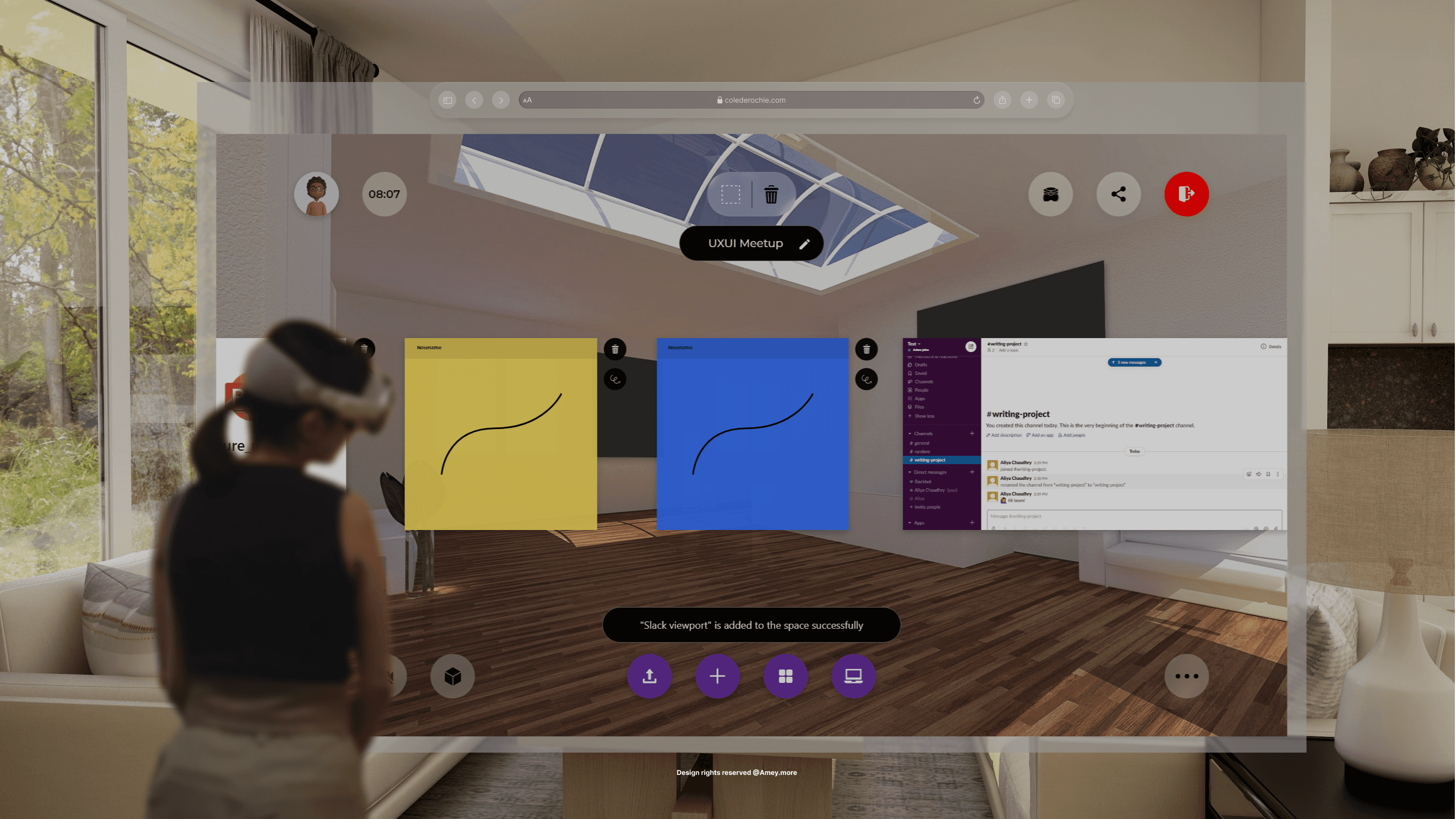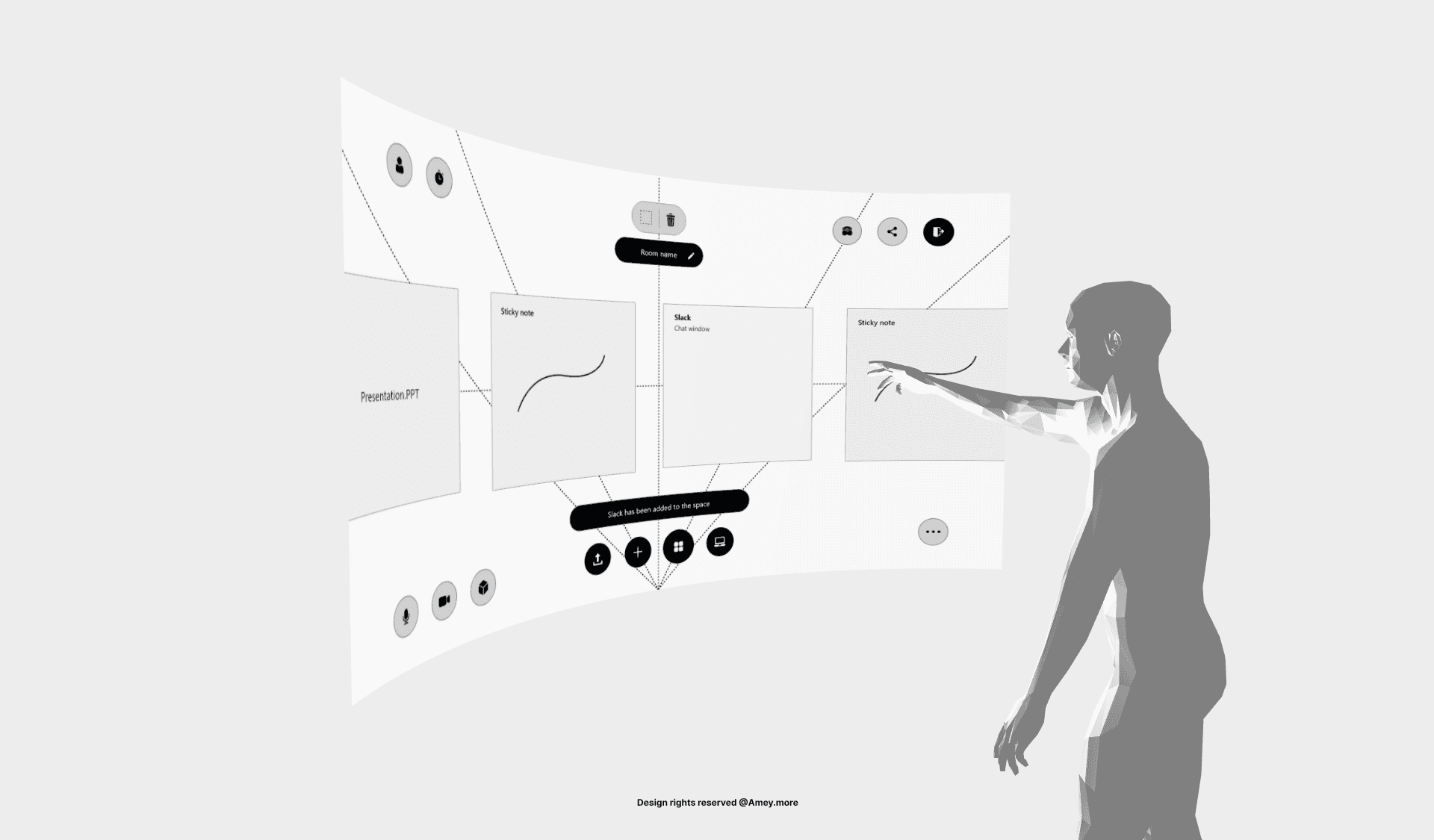 Modular spatial panels for tasks, files, and conversations allowed teams to position information around them rather than navigate nested menus. Visual hierarchy, spatial audio, avatar proximity, and lightweight gestures guided attention without overwhelming the environment.